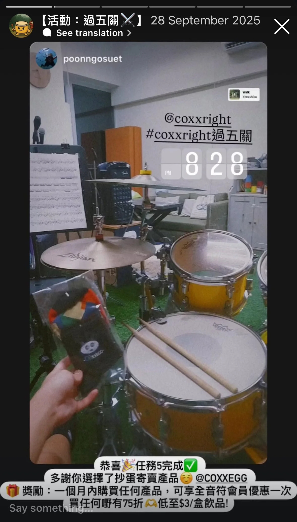 📷打卡方法:拍片30秒演奏上載 IG Story,Tag @COxxright 及 #COxxright過五關